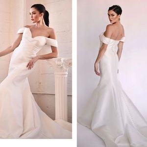 Glamorous Fit and Flare wedding dress- from Australian designer (Essence of Australia house) Martina Liana "1486". Straps are detachable, neckline sweetheart, full skirt with custom hitches, converting it into a mermaid when hitched. I wore this for my wedding in December (last picture) and it completely captures an elegant Hollywood vibe. Professionally dry cleaned and ready to go!