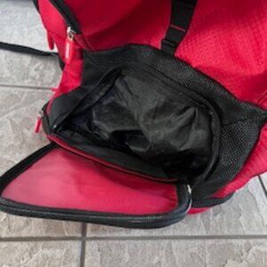 Used for one season! Lots of zippered storage. Not tears and all zippers are functional. There are a couple of marks on each side pocket.