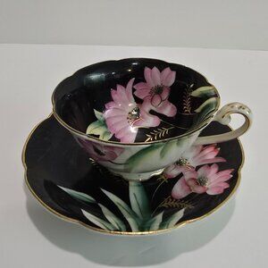 Maruki China - Vintage Teacup & Saucer Set, Hand-Painted Pink Orchids