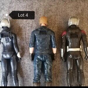 Lot 7... Lot.. Avengers airplane.. 2 compartments as shown.. 4.. 6 inch avengers.. 1 motorcycle riding Spiderman