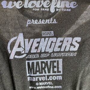 Features: We Love Fine, Marvel, Avengers, Age of Ultron, Black Widow, tank top, knot back, deep arm holes, navy, black, metallic silver, SHIELD logo, cosplay, juniors sizing, movie, pop culture, comic con