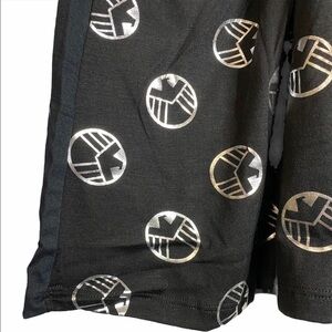 Features: We Love Fine, Marvel, Avengers, Age of Ultron, Black Widow, tank top, knot back, deep arm holes, navy, black, metallic silver, SHIELD logo, cosplay, juniors sizing, movie, pop culture, comic con