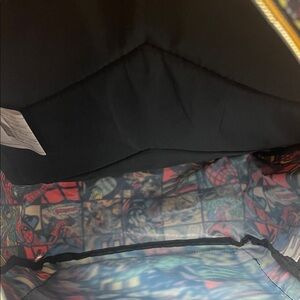 Vibrant Marvel backpack with iconic character designs. Perfect for fans. Stylish and durable. In good, previously enjoyed condition with signs of use and some discolouration from use on fabric. Inside shows mild stress marks in plastic lining as photographed. See photos closely. This backpack is still in great shape and ready for carrying supplies to school or daycare.