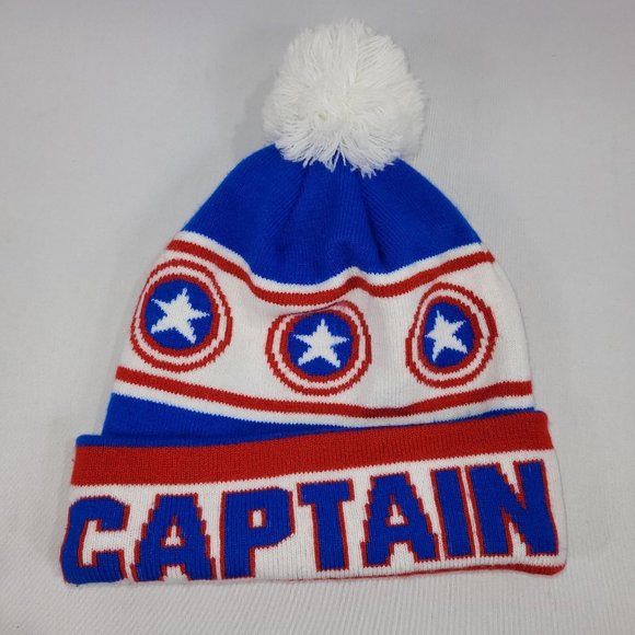 Marvel Comics Avengers Captain America Toque Knit Winter Hat Superhero Pompom