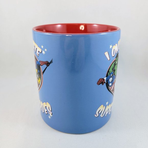 Marvel Comics Mug Cup I Only Date Superheroes Ceramic 2010 Blue Red Read