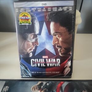 Marvel DVD set featuring Deadpool, Thor, Captain America, Civil War, and Avengers. Vibrant covers with iconic characters.
