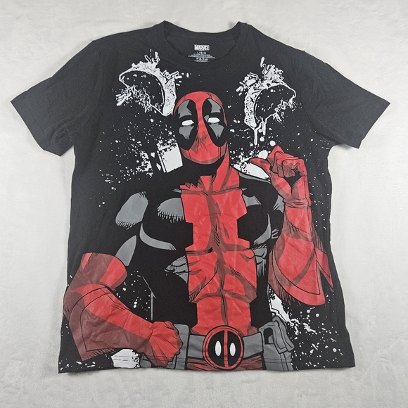 Marvel Deadpool Men's T-Shirt Size Large All Over Print Black