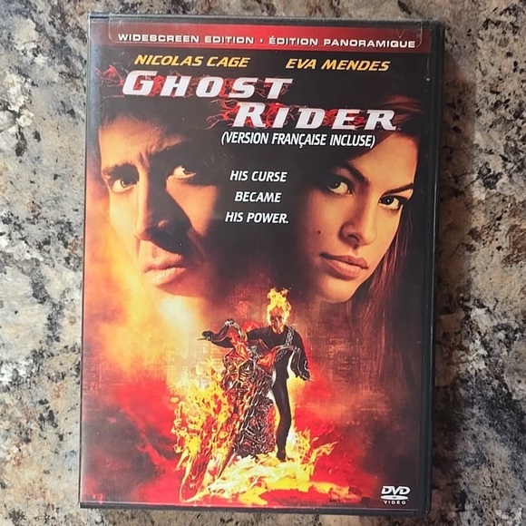 Marvel's Ghost Rider DVD featuring intense cover art. Includes French version.