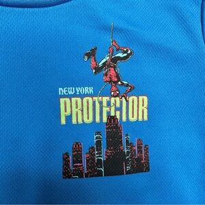 Experience the comfort of this Marvel blue tee, featuring Spider-Man graphics on the chest and back. Crafted from a soft cotton blend, it offers a classic crew neck and short sleeves, perfect for everyday wear.