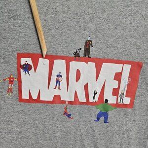 Marvel x Uniqlo UTGP 2018 Shirt Men's Sz L Gray Avengers Iron Man Spiderman Hulk
