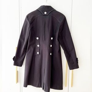 This is gorgeous! Marvin Richards black cotton trench with white buttons and white stitching. The detail on this is incredible. Classic, chic, and a staple in everyone’s wardrobe. Size medium. Excellent if not pristine condition.