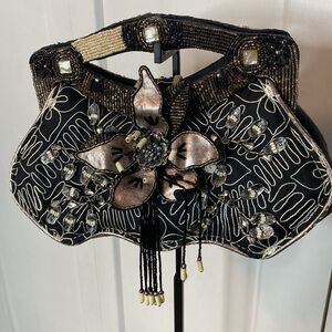 Mary Frances Black and greys Clutch - unique design - intricate beading and flor