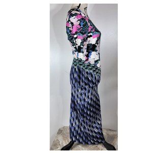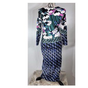 Mary Katrantzou Cloud Print Long Sleeve Jersey Bodycon Midi Dress Size S