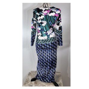 Mary Katrantzou Cloud Print Long Sleeve Jersey Bodycon Midi Dress Size XS