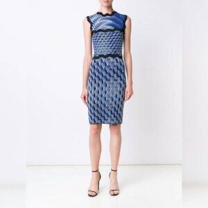 Mary Katrantzou PF/16 Swisher Blue Sleeveless Wavy Print Knit Dress