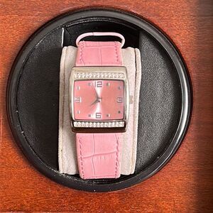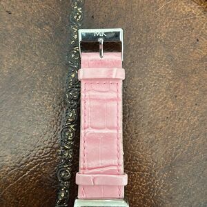 Mary Kay Pink Dial Crystal Accent Silver Tone Case Pink Band Watch