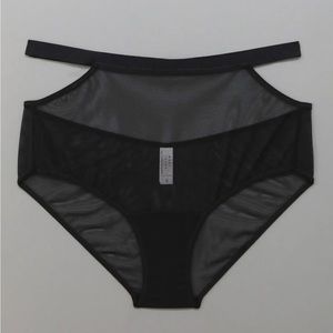 Starting high in the front and getting low in the back. It's a chic brief, featuring single layer mesh and a large cut out, giving it a strappy look. Resting at your natural waist and offering a full bum – we stay true to our values with this design: sexy is comfortable.