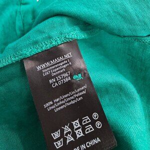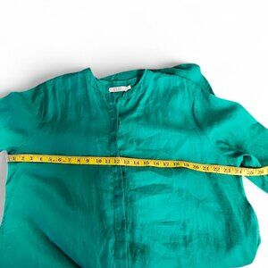 Masai Copenhagen 100% Linen Shirt Dress, Button Front, 3/4 Sleeve, Green, Size L