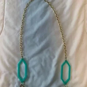 New handmade turquoise and gold mask/glasses chain. Purchased from a farmers market. Approximately 25.5” long.
