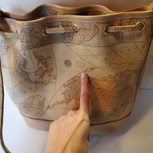 Maskof Italy Vintage World Map Bucket Bag Tan Neutral Vegan Leather