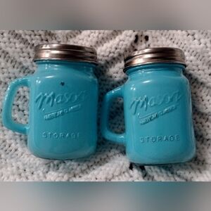 Mason Jar Light Blue Salt & Pepper Shakers With Handles Shot Glass 4 oz