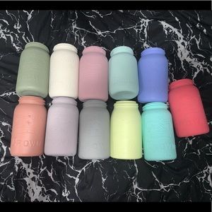 Second row: terracotta, cobblestone (grey with mauve tint), light grey, sunshine yellow, turquoise, fiery corral.
