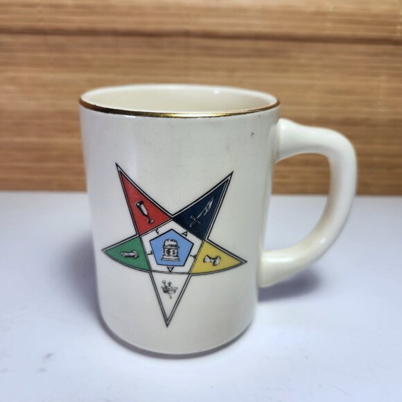 Masonic Coffee Cup “Order of the Eastern Star” Vintage Gold Gilded Rim Freemason