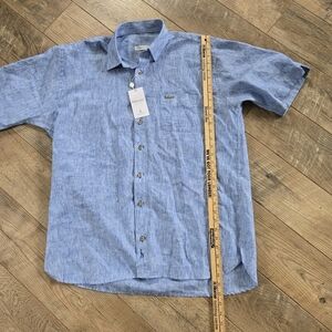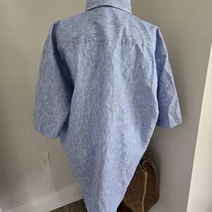 Stylish blue button-up shirt dress with a relaxed fit. Features a classic collar and button details. new with tags