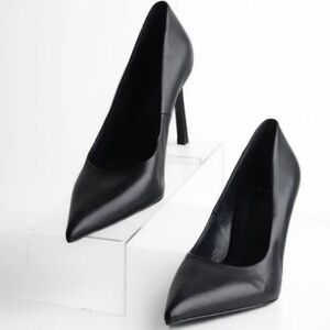 These black heels from Massimo Dutti feature a sleek stiletto design with a pointed toe and a smooth, polished finish. The minimalist style and elegant profile make them perfect for professional and formal occasions.