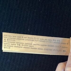 Wool, cashmere blend. See picture for exact fabric composition. It feels soft.