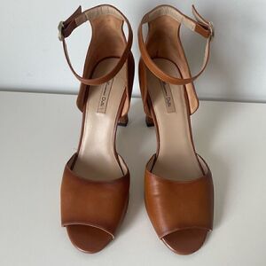 Massimo Dutti Brown Leather Heels Size 41 (US 10) Ankle Strap Sandals