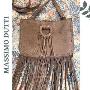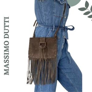 Massimo Dutti Brown Suede Fringe Crossbody Bag | Zip Closure | Adjustable Strap