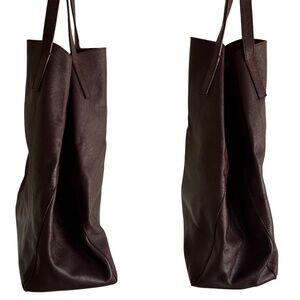 Crafted in Spain from genuine leather in a deep burgundy tone, this minimalist tote carries quiet elegance and natural patina from use.