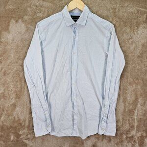 Massimo Dutti Dress Shirt Italian Fabric Men's Sz M Blue White Striped Button Up