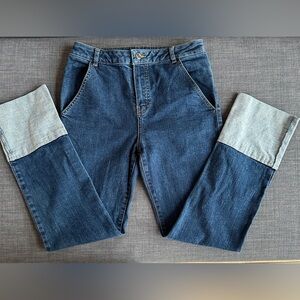 Massimo Dutti | High Rise Straight Leg Jeans | Cuffed Hem Dark Wash | Size 4