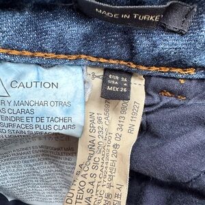 Massimo Dutti jeans | High rise cuffed jeans | Rolled hem jeans | Straight leg dark wash | Casual tailored denim | European denim | Turn-up hem jeans | Size 4 denim | Modern classic jeans