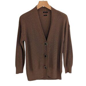 This is a brown long cardigan with oversized buttons by Massimo Dutti. Made from a smooth cotton-poly blend yarn,