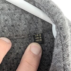 Massimo Dutti button down shirt in a gray / black dots pattern. The fabric is 100% cotton, knit (so a little stretchy). The inside tag is missing, I used the photo from another listing showing the same item.