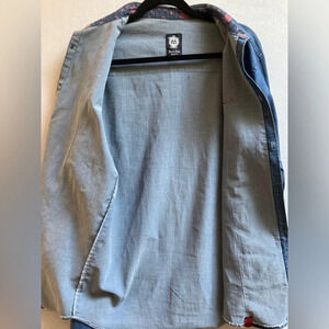 Massimo Dutti Slim Fit denim button shirt floral collar Sz XXL