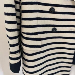 Navy and Cream cotton blend Italian fabric double breasted blazer. Like new. Notched lapels. Pockets have flaps.