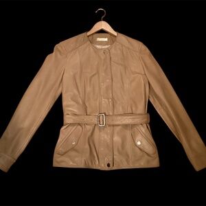 Massimo Dutti Tan Leather Jacket, Tagged large fits medium