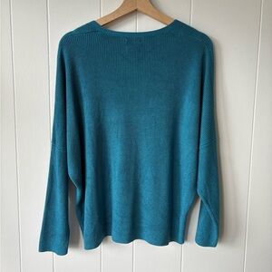 Massimo Dutti Teal Knit V-Neck Sweater | Size Medium