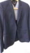 a navy blue blazer made by Massimo Dutti. Massimo Dutti is a Spanish clothing retailer that specializes in premium garments and is owned by Inditex, the same company that owns Zara. The blazer features a single-breasted design with one button closure, two flap pockets, and four buttons on the cuffs and the lining of the blazer is visible, showing a striped pattern. texture. Massimo Dutti was founded in 1985 in Barcelona. The brand is known for its classic and timeless designs, with a focus on quality fabrics and attention to detail.