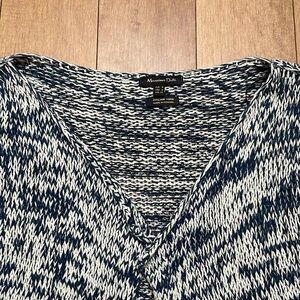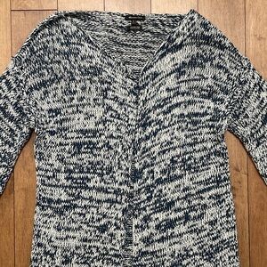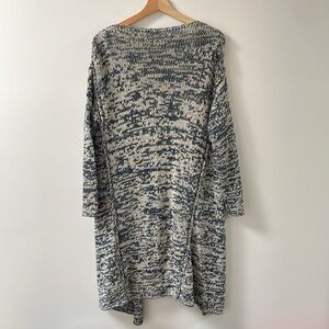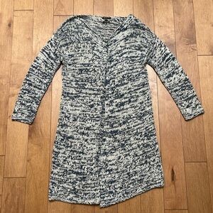 Massimo Dutti long knit cardigan open front Italian cotton yarn blue white sz M