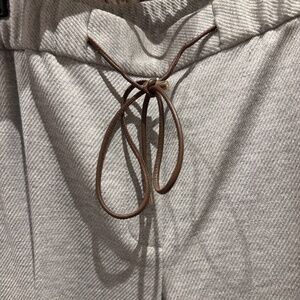 Grey Massimo Dutti tapered pants. Jogger fit. Brown leather draw strings. Size 10. Business casual. Can be dressed up or down. Only wore once!