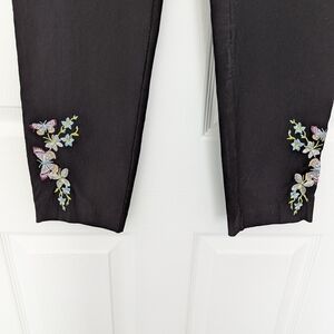 Massimo Fabbro black pants with floral embroidery at the hem.