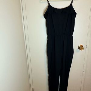 Massimo women's jump suit spaghetti strap cinched waist black medium. could be dressed up with heels or worn more casual with funky sneakers. perfect for date night or the office