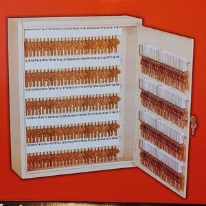 When key storage is important, we have the solution you have been waiting for. Heavy duty steel construction with full length, hinged door and built-in slotted key racks. Durable powder coated cabinet finish. Rekeyable W1 wafer cylinder with improved pick resistance. Key retaining security insures key cannot be removed until cabinet is locked. 2-Keys, key holders, out key tags, cross reference chart and installation hardware included. Holds 240-Keys. 20-inch (50.8cm) x 16-1/2-inch (41.9cm) x 5-inch (12.7cm).