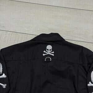 •Features: Button-up front, embroidered skull logos on both sleeves, pointed collar, limited edition “Evermore” line