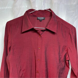 Merlo color shifting from a bright red to a deep dark lushes red bottom down long sleeve cuffed collar formal size small woman’s blouse